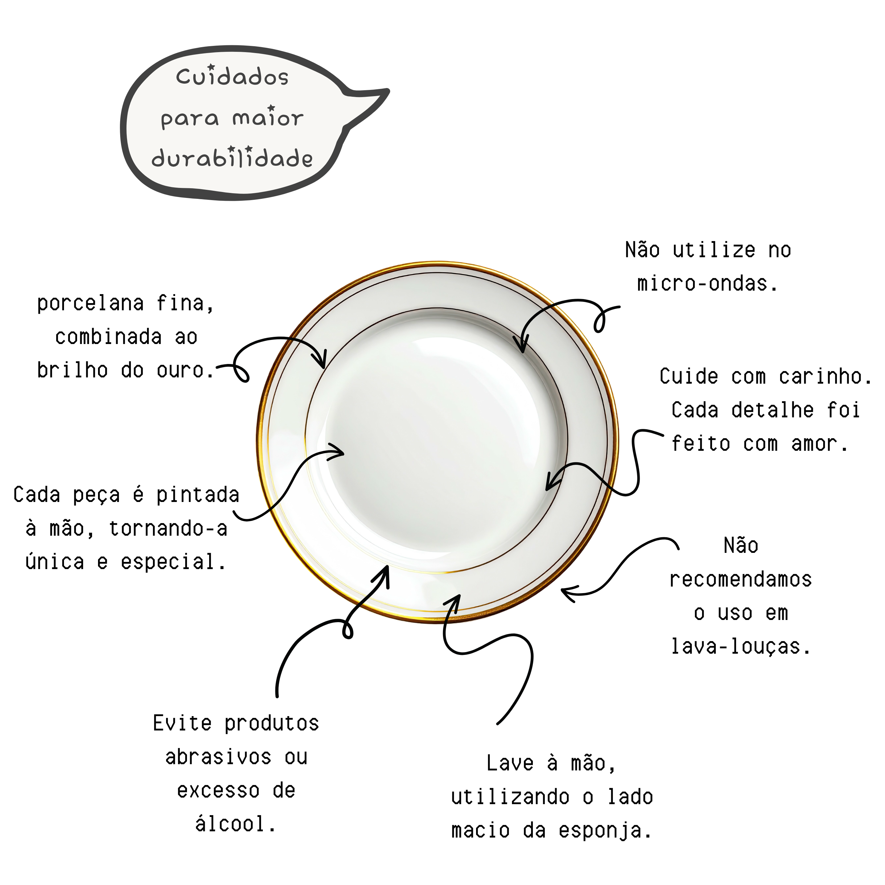Prato Porcelana com Fio de Ouro 26cm + Ilustração